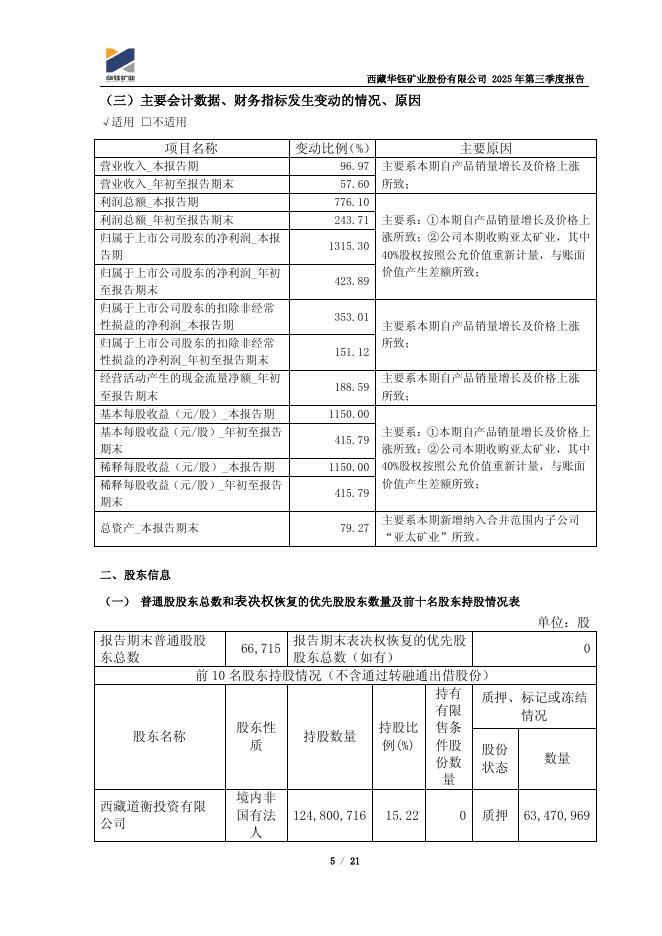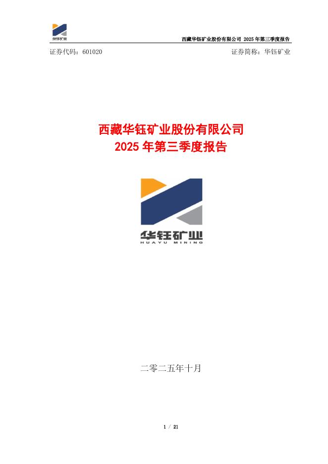 601020-华钰矿业:西藏华钰矿业股份有限公司2025年第三季度报告.pdf