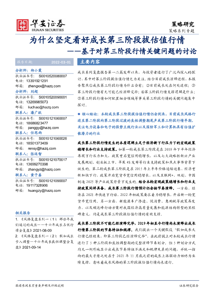 华安证券:基于对第三阶段行情关键问题的讨论:为什么坚定看好成长第三阶段拔估值行情.pdf