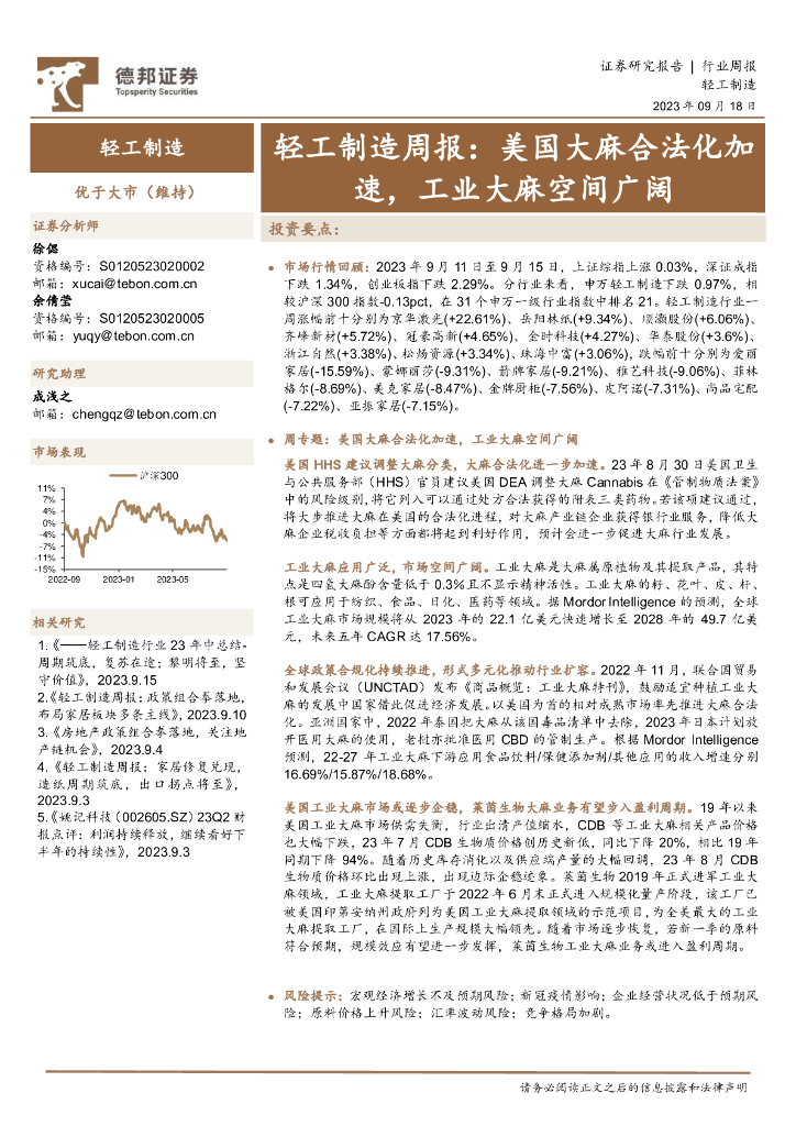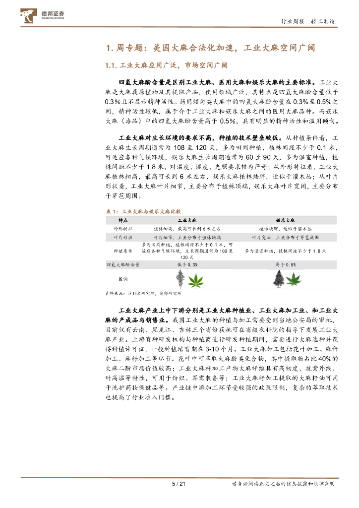 德邦证券:轻工制造周报:美国大麻合法化加速,工业大麻空间广阔.pdf
