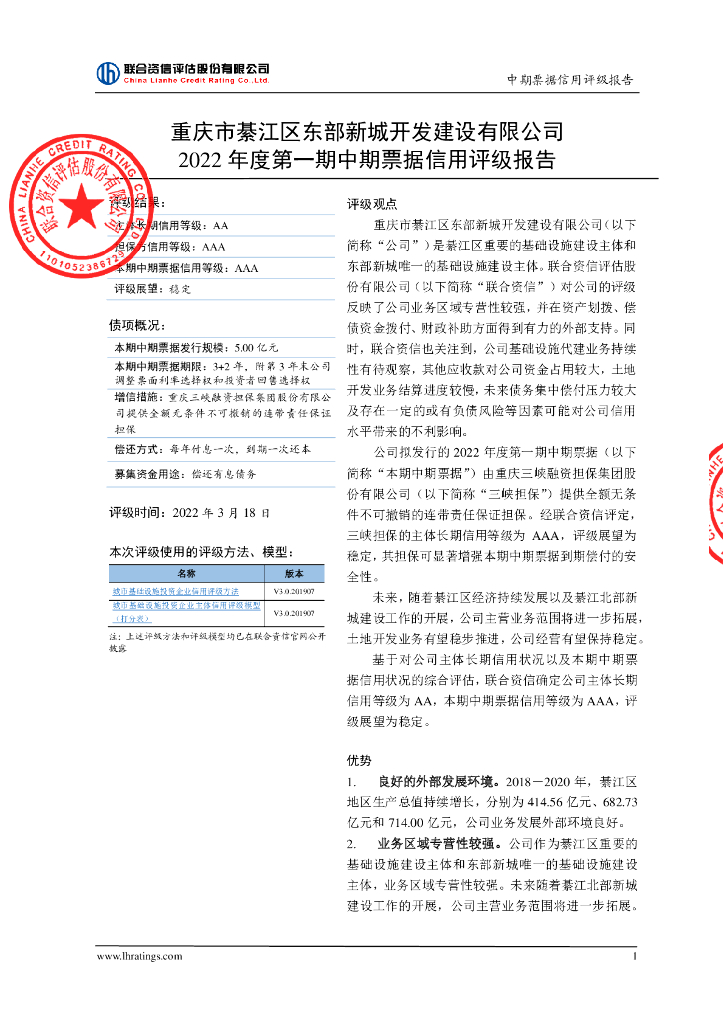 联合资信:重庆市綦江区东部新城开发建设有限公司2022年度第一期中期票据信用评级报告.pdf