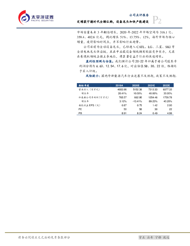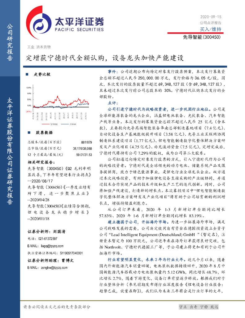 太平洋证券:先导智能(300450)-定增获宁德时代全额认购,设备龙头加快产能建设.pdf