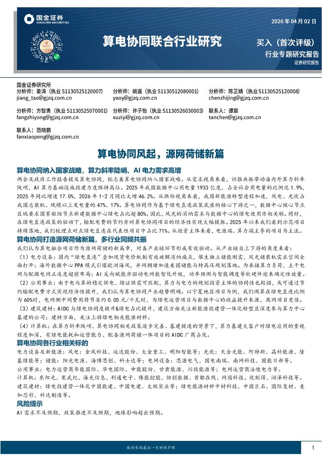 国金证券:算电协同联合行业研究:算电协同风起,源网荷储新篇-260403.pdf