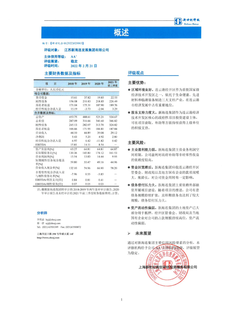 新世纪:江苏新海连发展集团有限公司主体信用评级评级报告.pdf