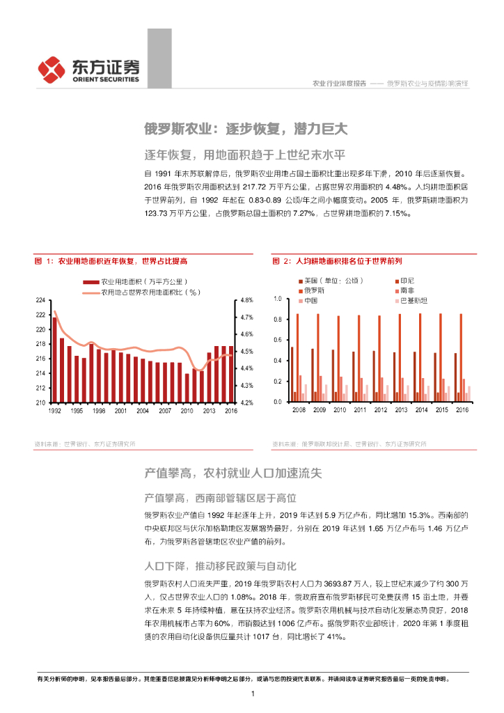 东方证券:新冠疫情下的全球农业专题二:俄罗斯农业与疫情影响演绎.pdf