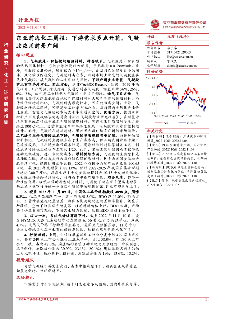 东亚前海证券:东亚前海化工周报:下游需求多点开花,气凝胶应用前景广阔.pdf