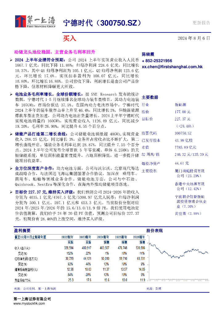 第一上海证券:宁德时代(300750)-动储龙头地位稳固,主营业务毛利率回升.pdf