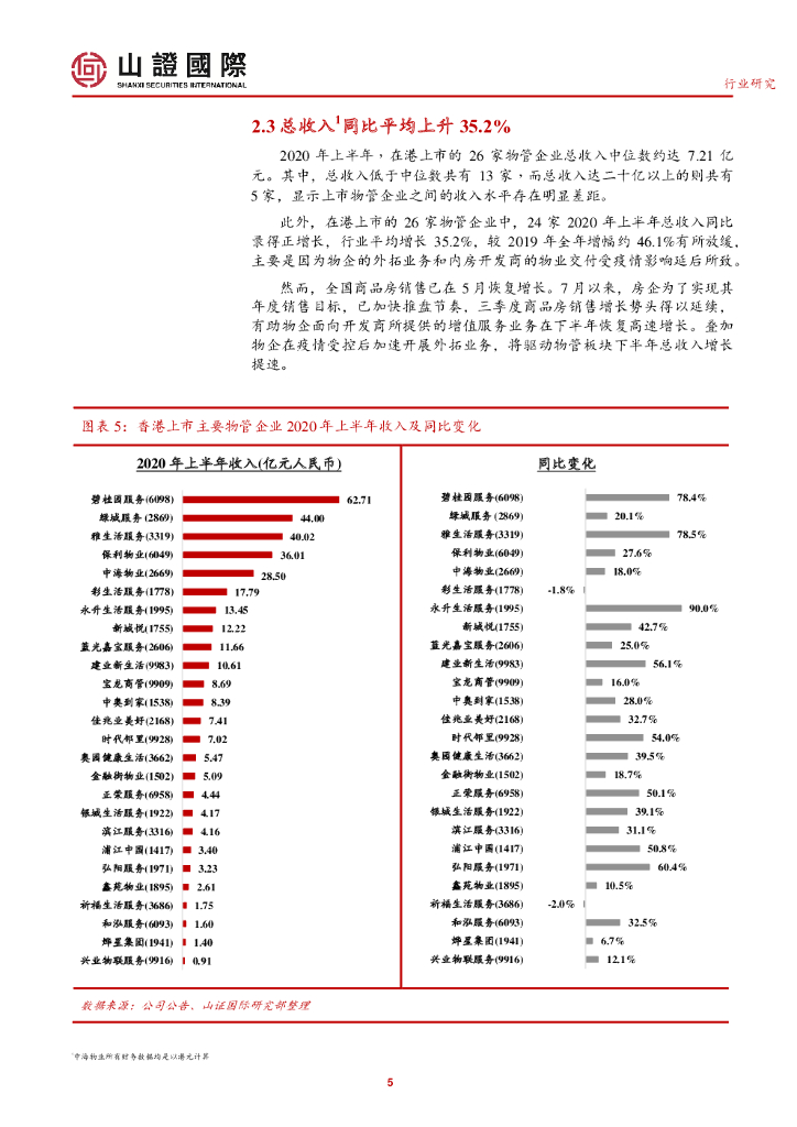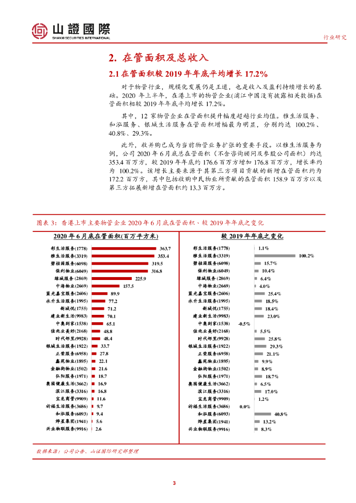 山证国际证券:物管公司2020年上半年经营及市场表现回顾:疫情拖累上半年行业增速,预期下半年恢复高速增长.pdf