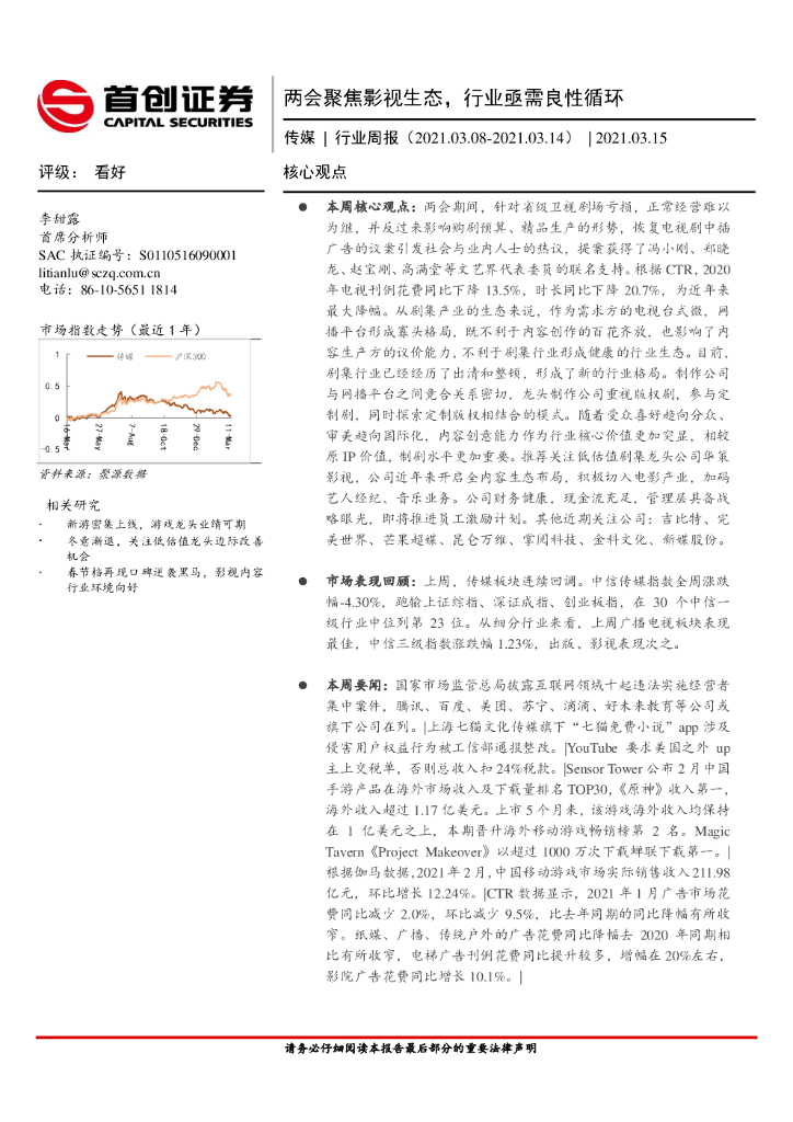 首创证券:传媒行业周报:两会聚焦影视生态,行业亟需良性循环.pdf