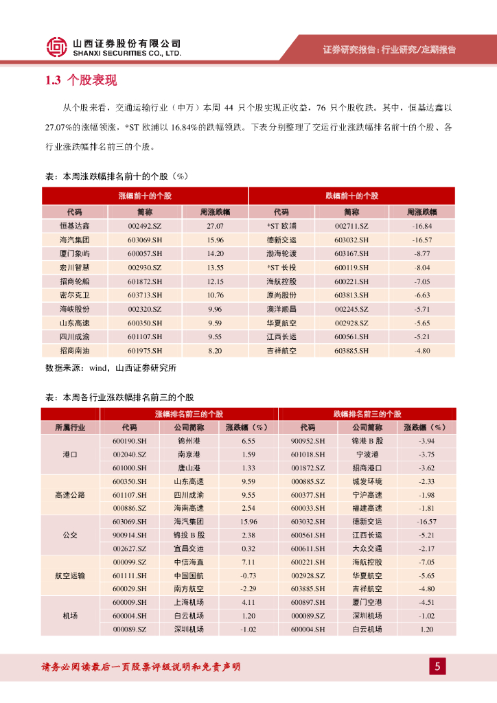 山西证券:交通运输行业周报:快递价跌量涨,民航逐渐恢复.pdf