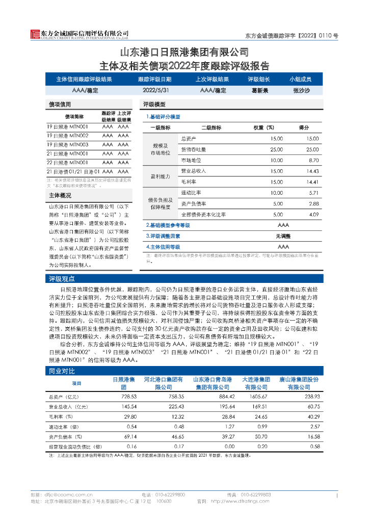 东方金诚:山东港口日照港集团有限公司主体及相关债项2022年度跟踪评级报告.pdf
