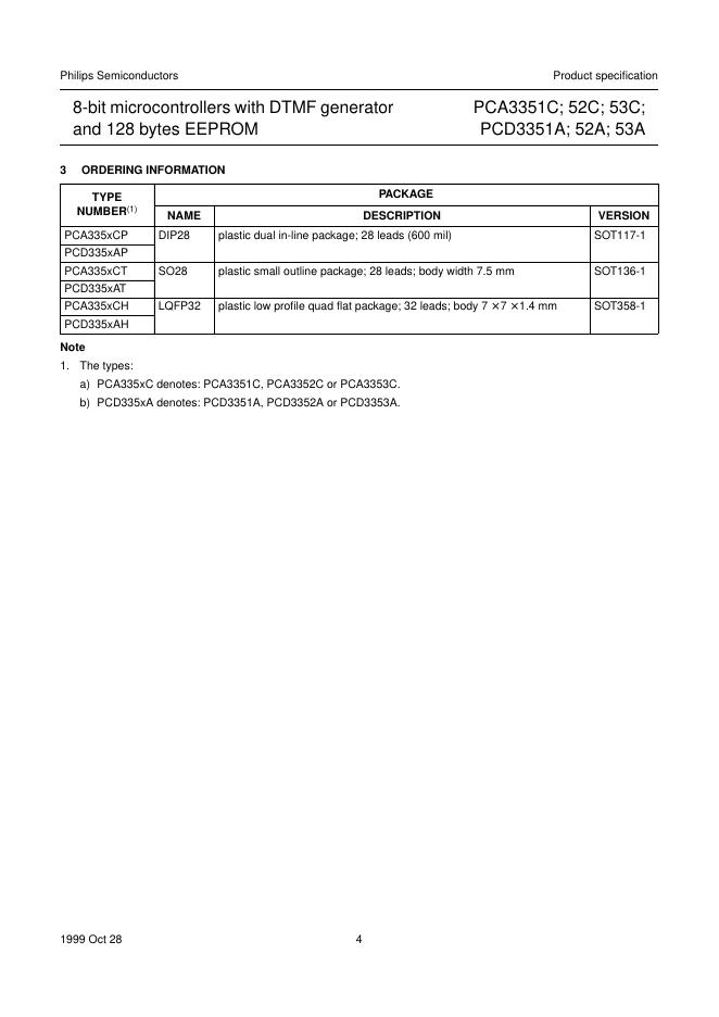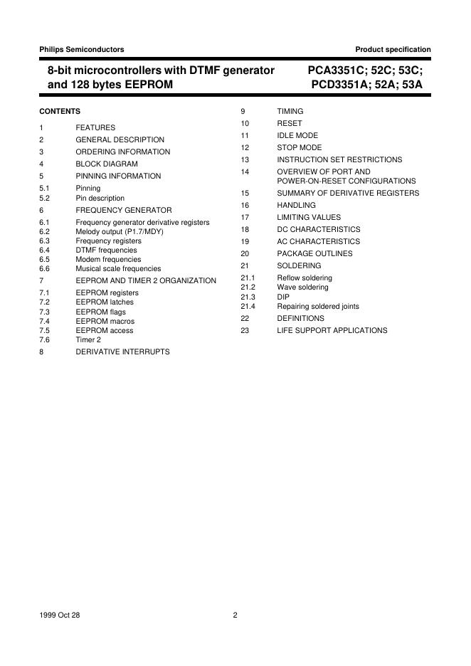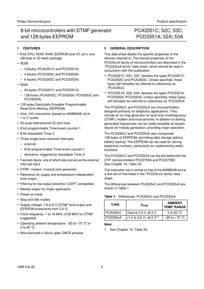 philips PCA3351C 52C 53C PCD3351A 52A 53A 8-bit microcontrollers with DTMF generator and 128 bytes EEPROM 数据手册.pdf