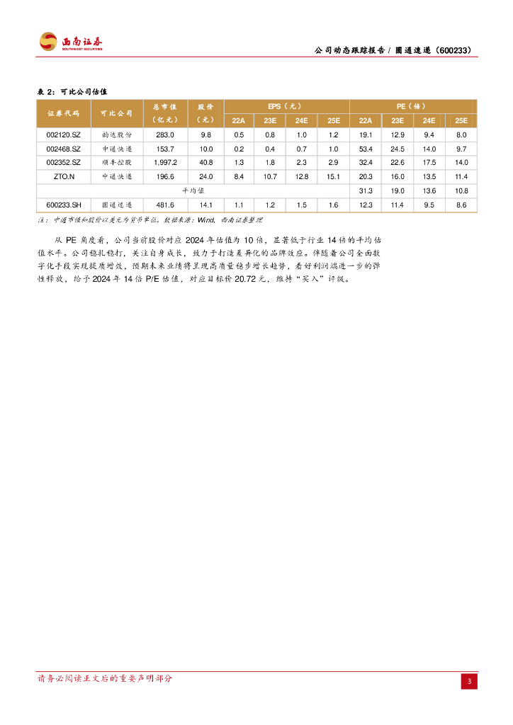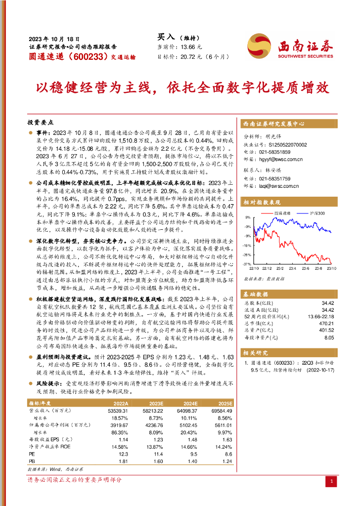 西南证券:圆通速递(600233)-以稳健经营为主线,依托全面数字化提质增效.pdf