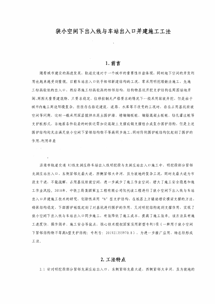 狭小空间下出入线与车站出入口并建施工工法.pdf