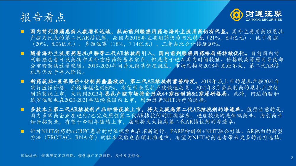 财通证券:医药生物:“从临床未满足需求出发”系列报告之一-掘金前列腺癌市场,国产二代AR拮抗剂迎来春天.pdf