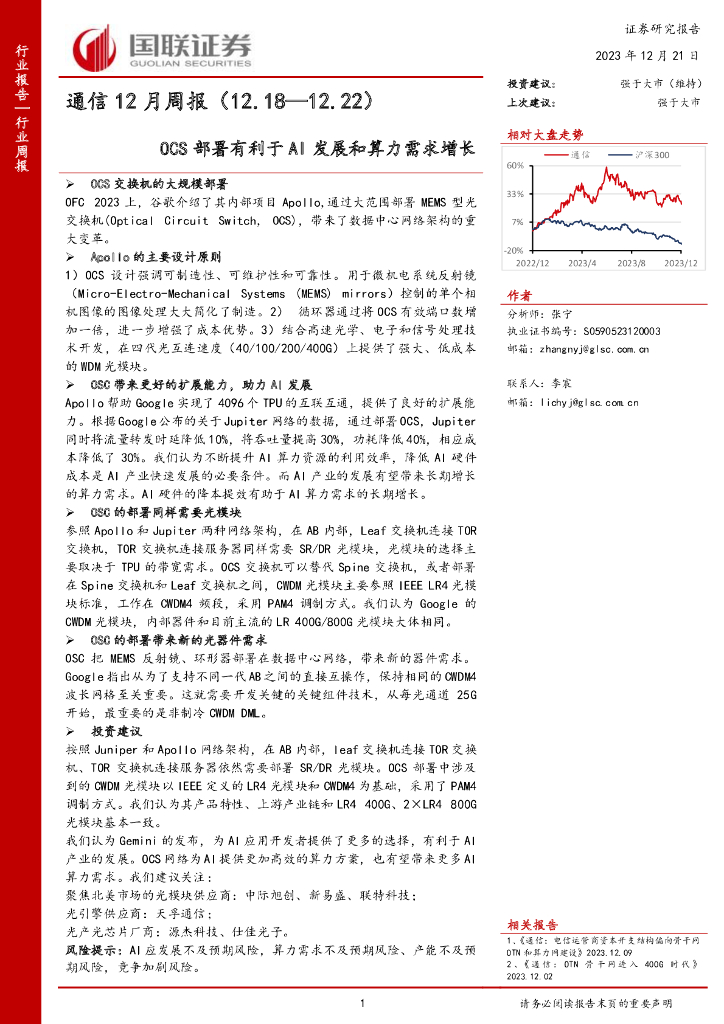 国联证券:通信12月周报:OCS部署有利于AI发展和算力需求增长.pdf