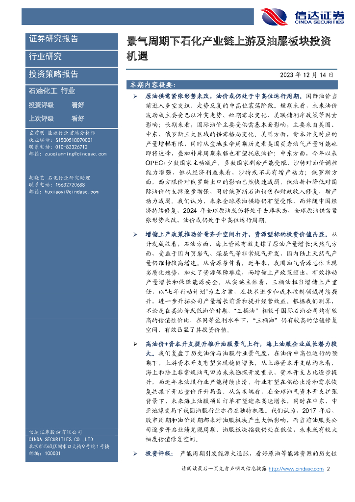 信达证券:2024年石化行业投资策略:景气周期下石化产业链上游及油服板块投资机遇.pdf