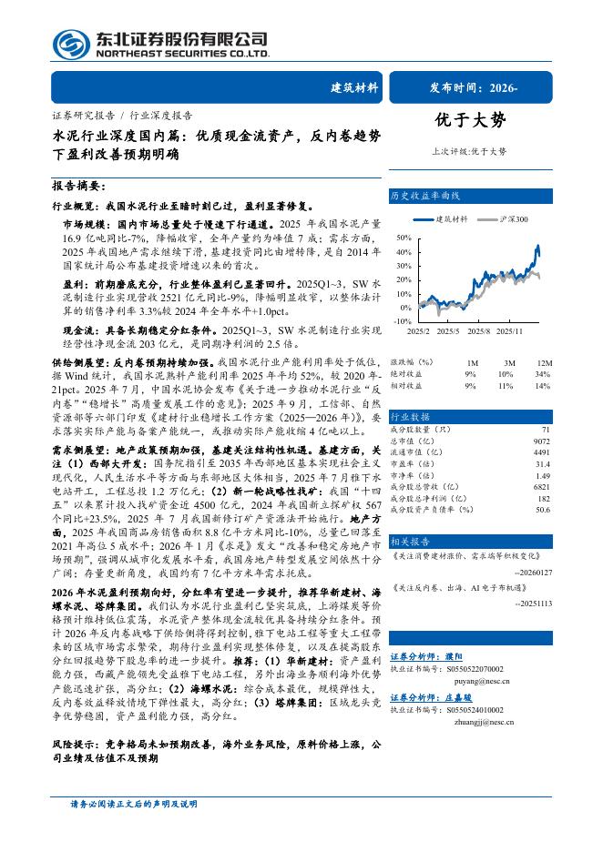 东北证券:水泥行业深度国内篇:优质现金流资产,反内卷趋势下盈利改善预期明确.pdf