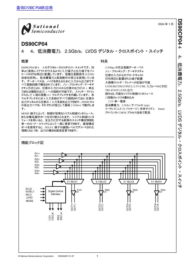 NATIONAL SEMICONDUCTOR - May 27, 2008 DS15BA101 1.5 Gbps Differential Buffer with Adjustable Output Voltage General 说明书