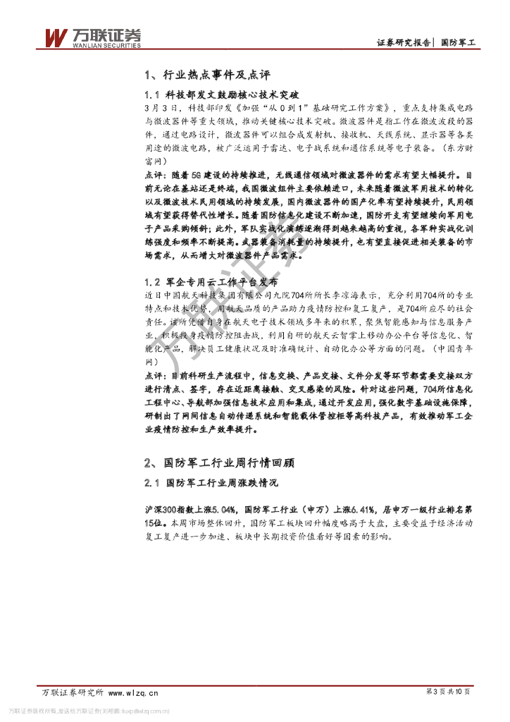 万联证券:国防军工行业周观点:板块整体迎来回升,持续看好板块投资价值.pdf