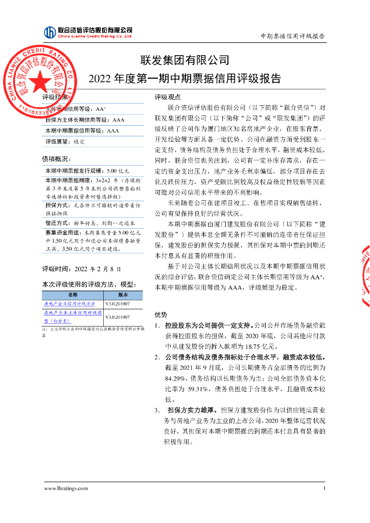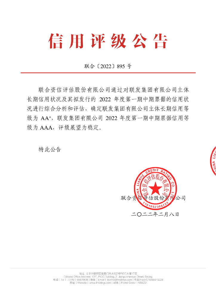 联合资信:联发集团有限公司2022年度第一期中期票据信用评级报告.pdf