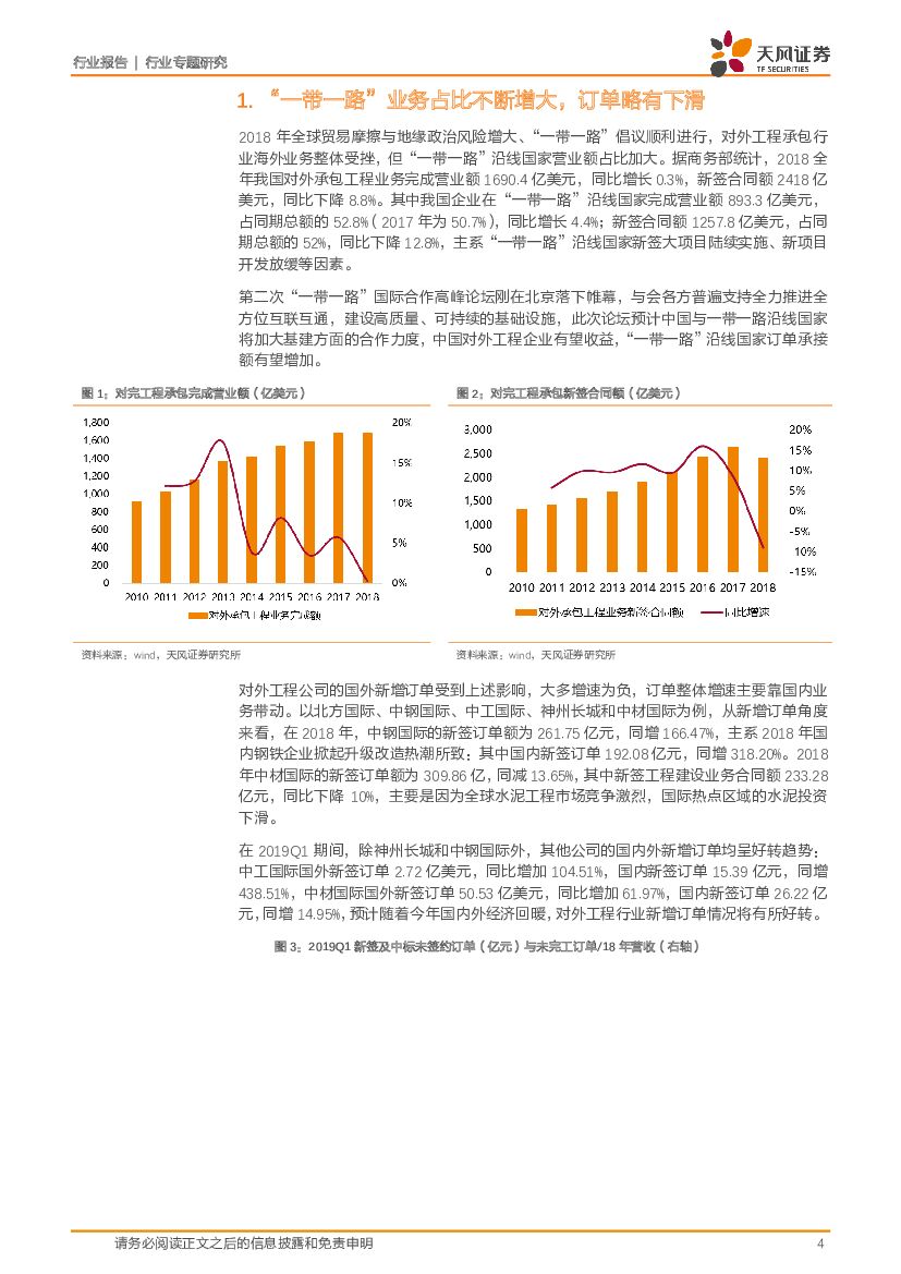天风证券:建筑装饰行业2018年和2019Q1对外工程财报汇总分析 :“一带一路”推进有望拉动订单增长,未来或持续加大国内布局.pdf