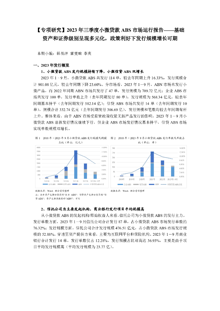 联合资信:2023年三季度小微贷款ABS市场运行报告——基础资产和证券级别呈现多元化,政策利好下发行规模增长可期.pdf