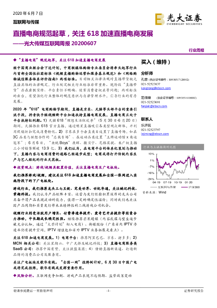 光大证券:光大传媒互联网周报:直播电商规范起草,关注618加速直播电商发展.pdf