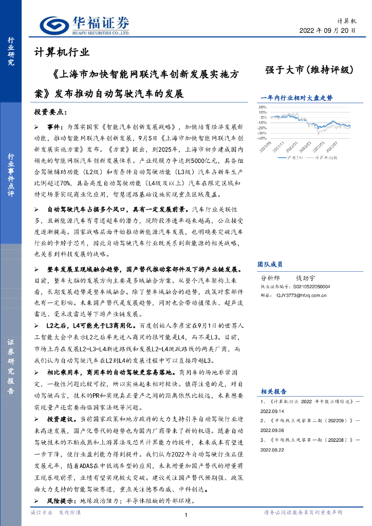 华福证券:计算机行业:《上海市加快智能网联汽车创新发展实施方案》发布推动自动驾驶汽车的发展.pdf