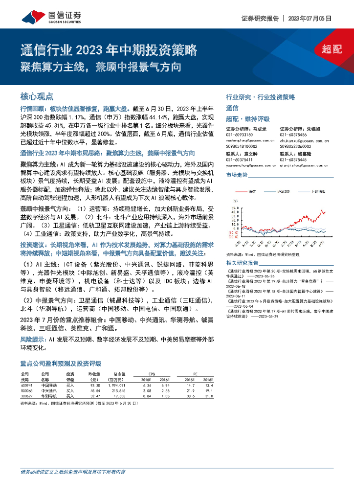 国信证券:通信行业2023年中期投资策略:聚焦算力主线,兼顾中报景气方向.pdf