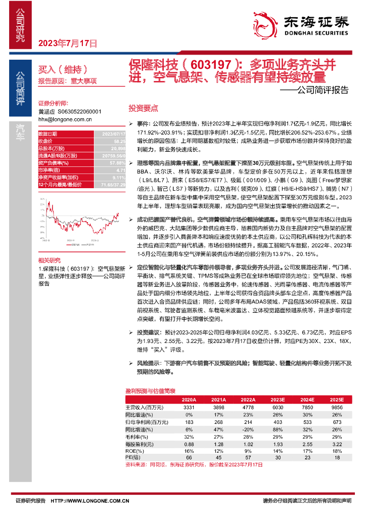 东海证券:保隆科技(603197)-公司简评报告:多项业务齐头并进,空气悬架、传感器有望持续放量.pdf