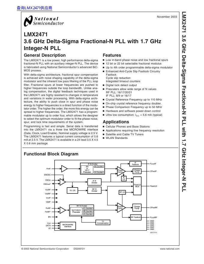 NATIONAL SEMICONDUCTOR - May 27, 2008 DS15BA101 1.5 Gbps Differential Buffer with Adjustable Output Voltage General 说明书
