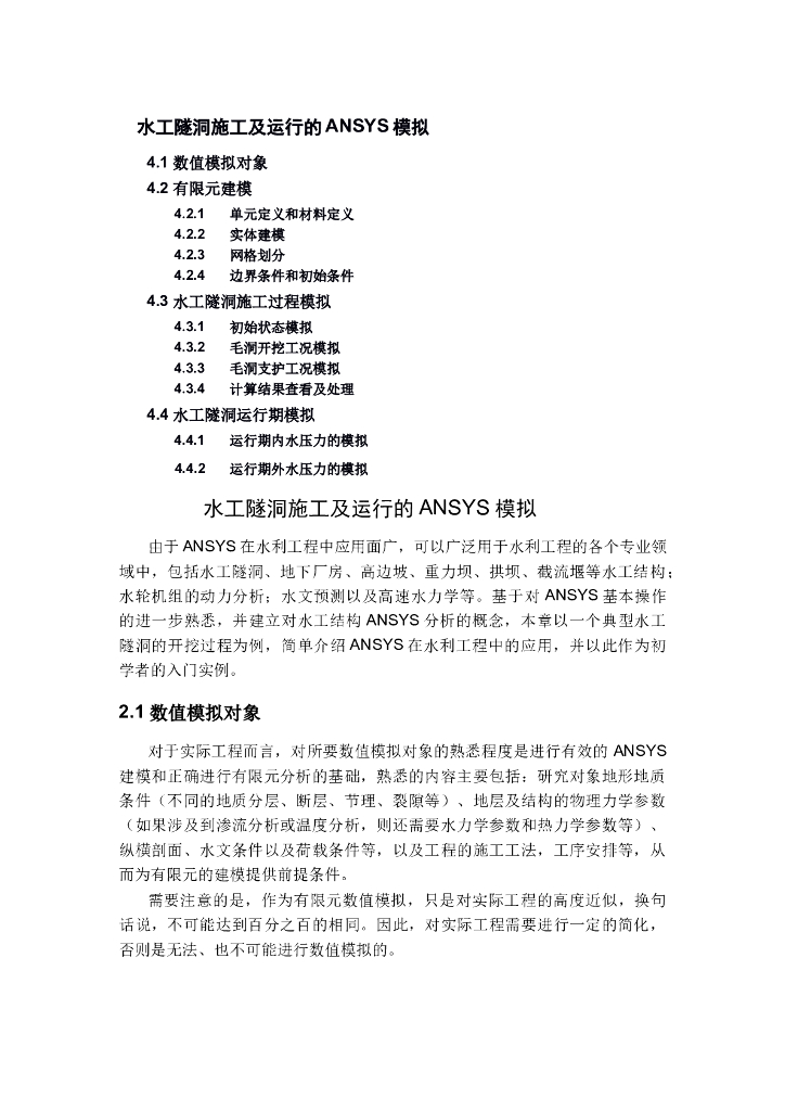 水工隧洞施工及运行的ANSYS模拟.doc