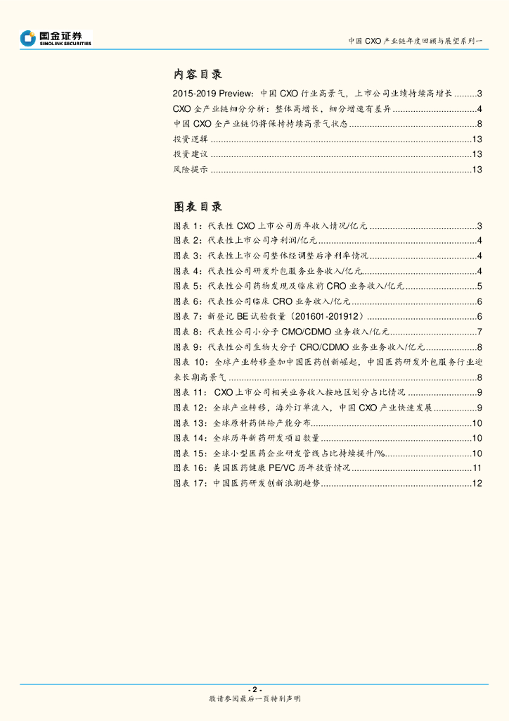 国金证券:中国CXO产业链年度回顾与展望系列一:2019年度回顾:景气度提升,业绩稳定高增长.pdf