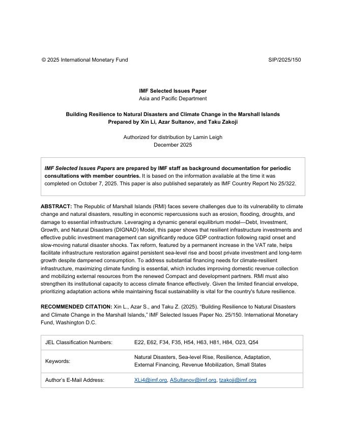 国际货币基金组织:增强马绍尔群岛对自然灾害和气候变化的抵御能力:马绍尔群岛共和国(英文版).pdf