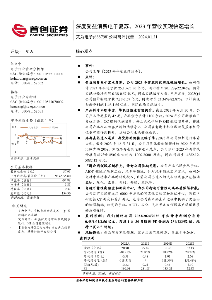 首创证券:艾为电子(688798)-公司简评报告:深度受益消费电子复苏,2023年营收实现快速增长.pdf