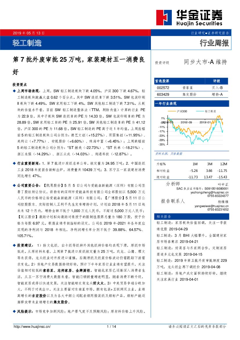 华金证券:轻工制造行业周报:第7批外废审批25万吨, 家装建材五一消费良好.pdf