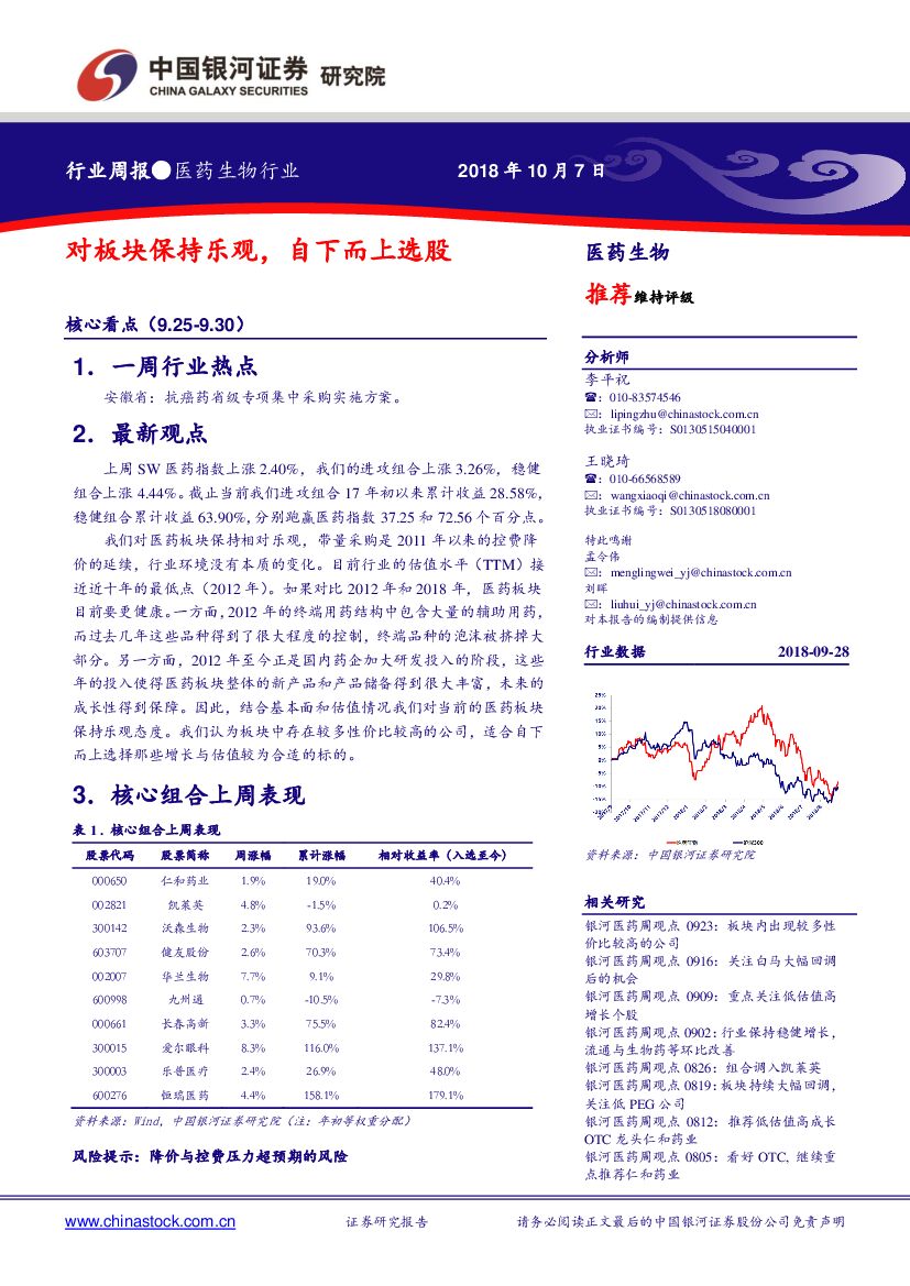 中国银河:医药生物行业周报:对板块保持乐观,自下而上选股.pdf