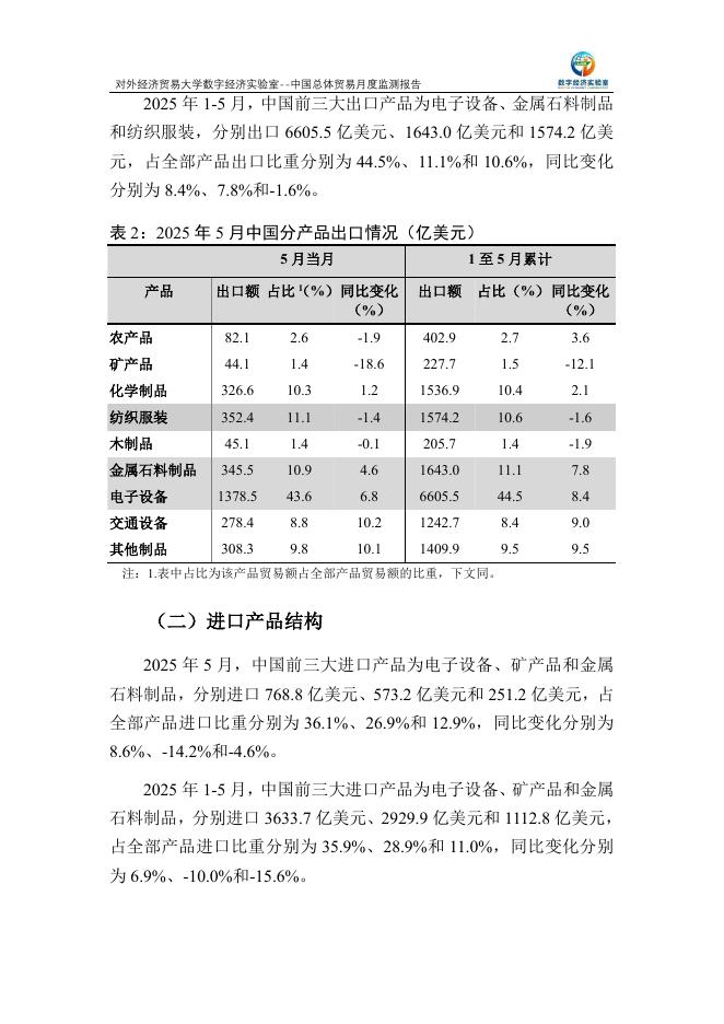 对外经济贸易大学:中国总体贸易月度监测报告(2025年1-5月).pdf