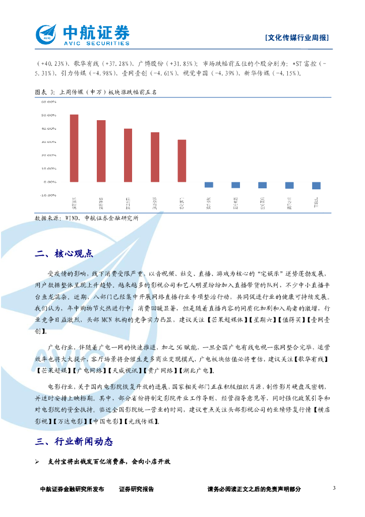 中航证券:文化传媒行业周报:年中购物节助力消费回暖,MCN和视频行业全力以“复”.pdf