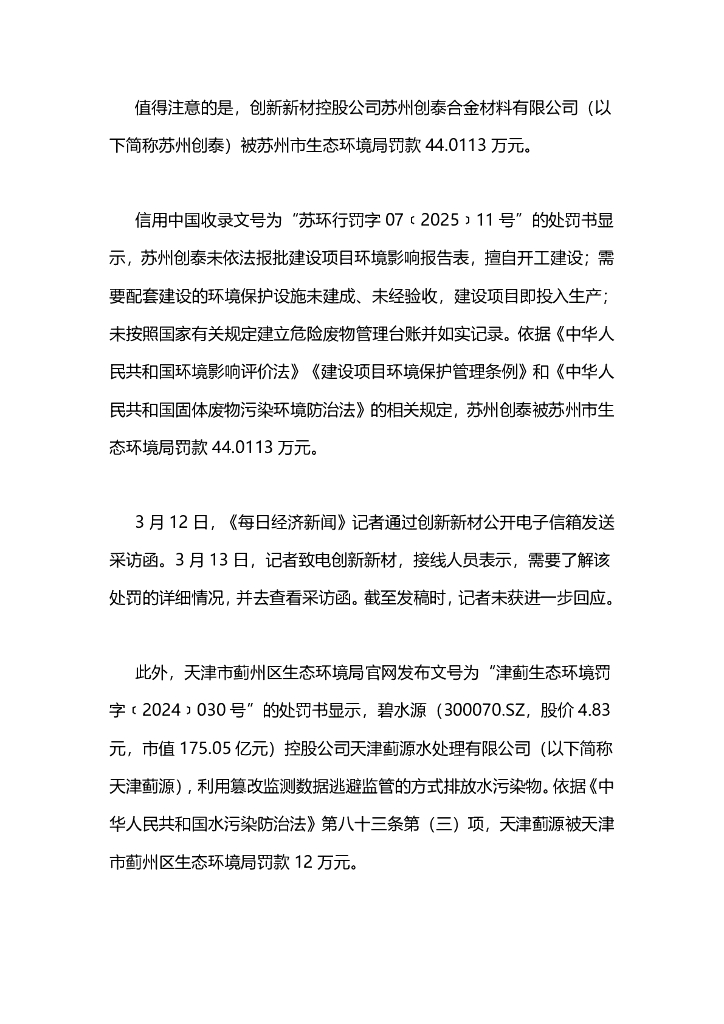 A股绿色周报(2025年3月第二周 总第193期):6家上市公司暴露环境风险 创新新材控股公司因未批先建等被罚44万元.pdf
