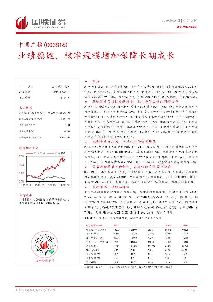 国联证券:中国广核(003816)-业绩稳健,核准规模增加保障长期成长.pdf