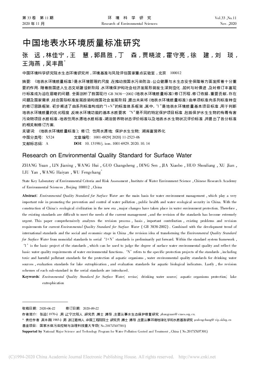 中国环境科学研究院:中国地表水环境质量标准研究.pdf