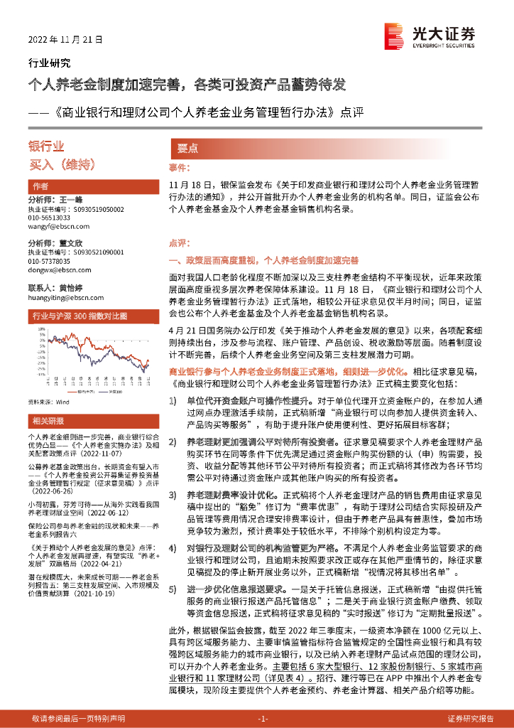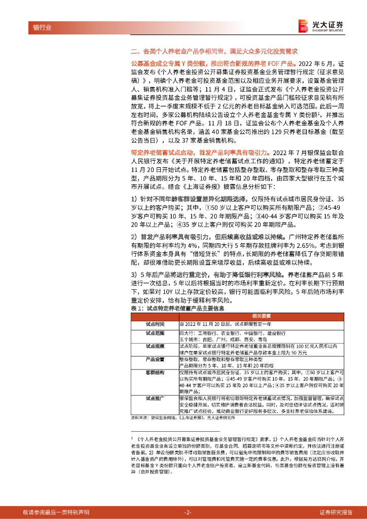 光大证券:银行业:《商业银行和理财公司个人养老金业务管理暂行办法》点评-个人养老金制度加速完善,各类可投资产品蓄势待发.pdf