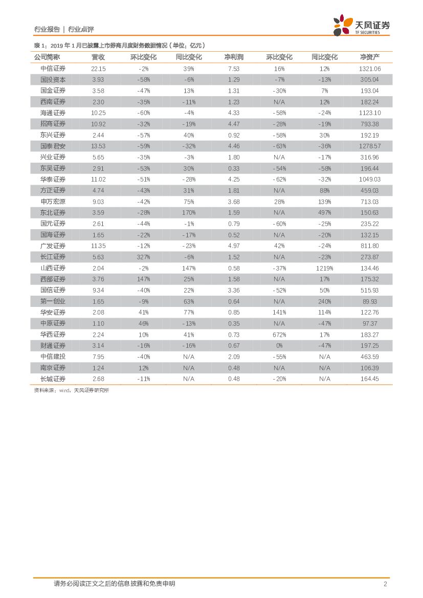 天风证券:证券行业1月月报:行业净利润符合预期,中信证券明显更优,市场回暖预计将驱动业绩回升.pdf