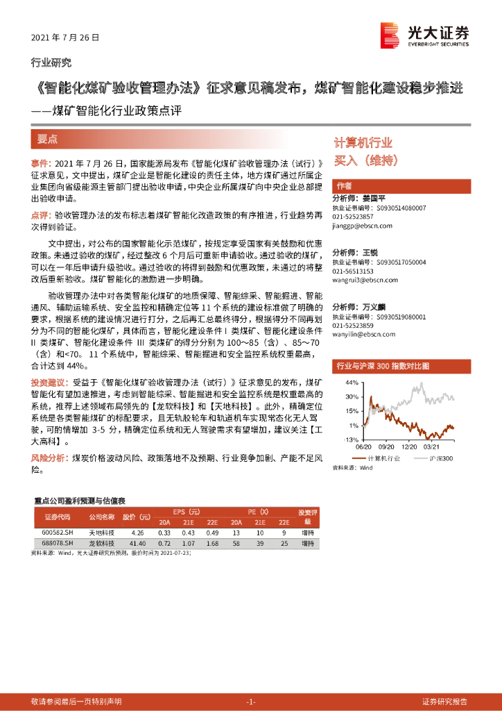 光大证券:煤矿智能化行业政策点评:《智能化煤矿验收管理办法》征求意见稿发布,煤矿智能化建设稳步推进.pdf