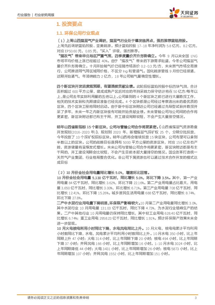 天风证券:公用事业行业研究周报:蓝焰控股基本面更新,十月发电量增速回落至5%.pdf