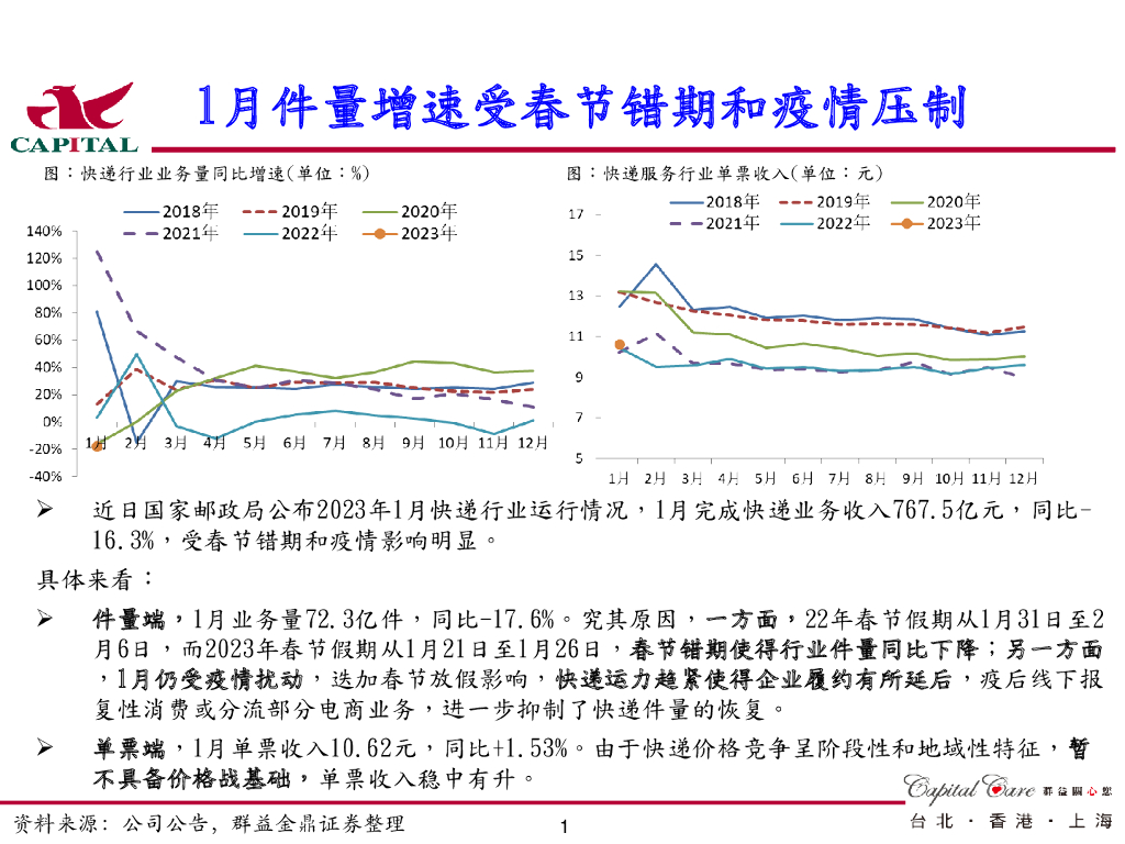 群益证券:快递行业1月资料点评:疫情+春节影响短期增速 快递行业恢复仍可期待.pdf