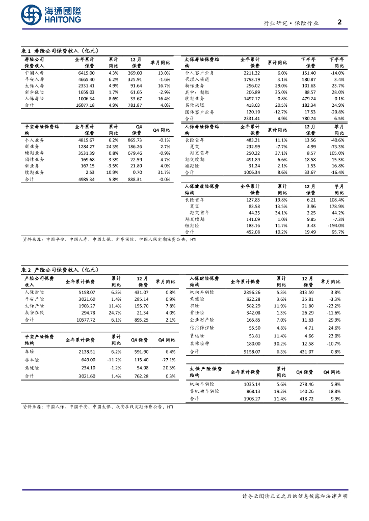 海通国际:上市险企12月保费点评:全年寿险新单高增长,产险分化主要受非车险影响.pdf