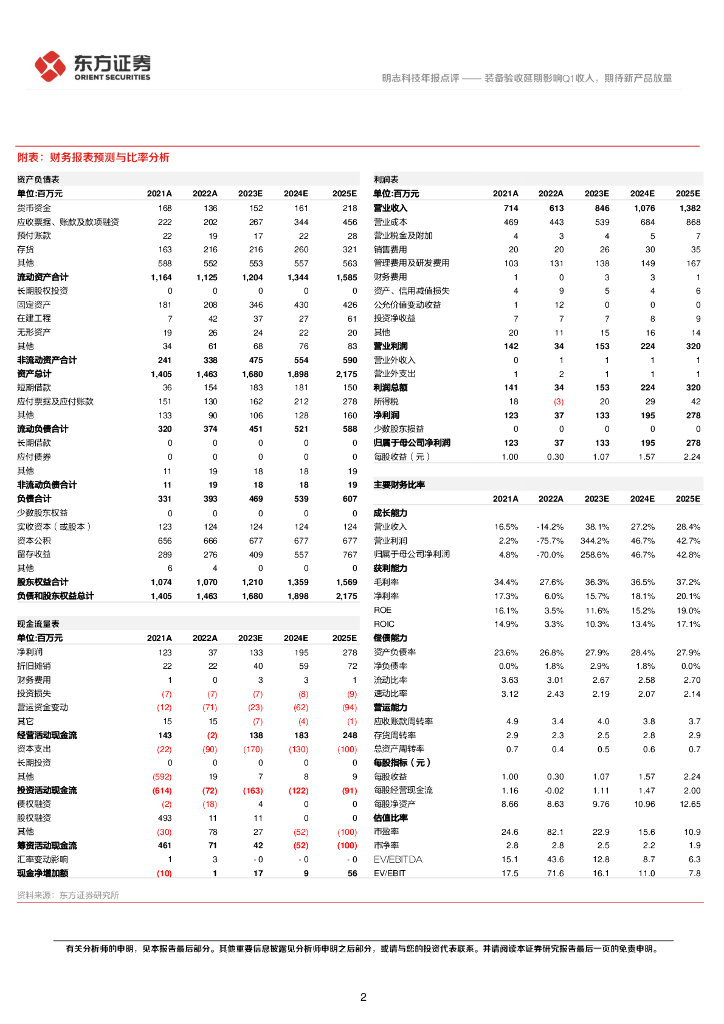 东方证券:明志科技(688355)-装备验收延期影响Q1收入,期待新产品放量.pdf