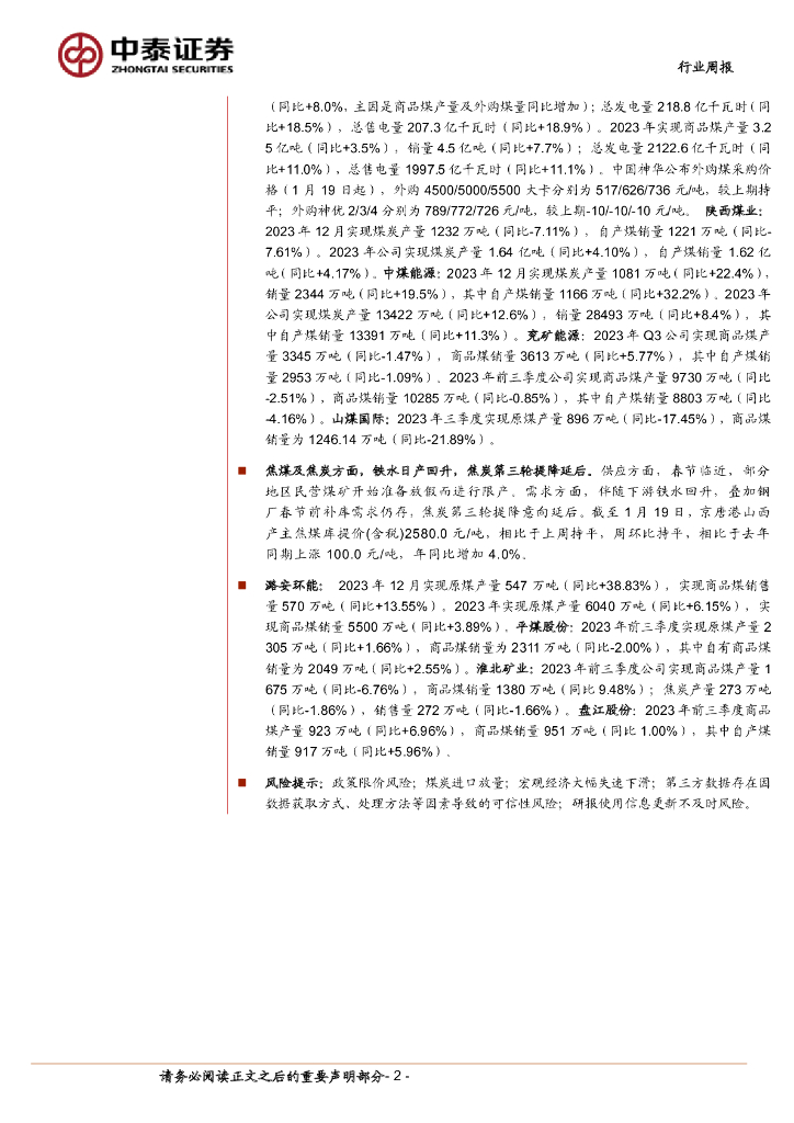中泰证券:煤炭行业周报:煤炭价格具备较强支撑,把握调整机会积极布局.pdf